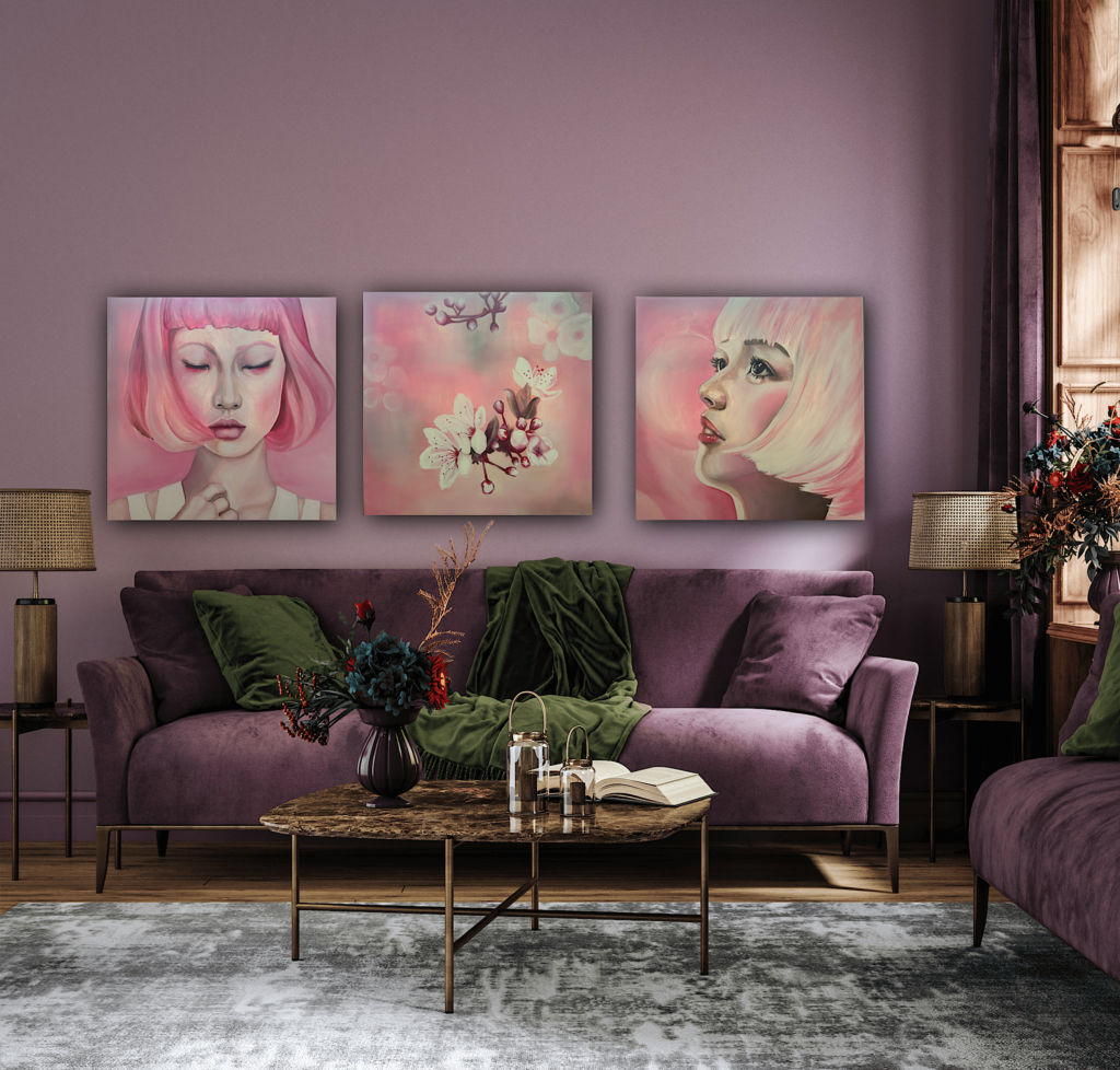 Cherry blossom painting in soft pink tones, adding a touch of romance and tranquility to any space.