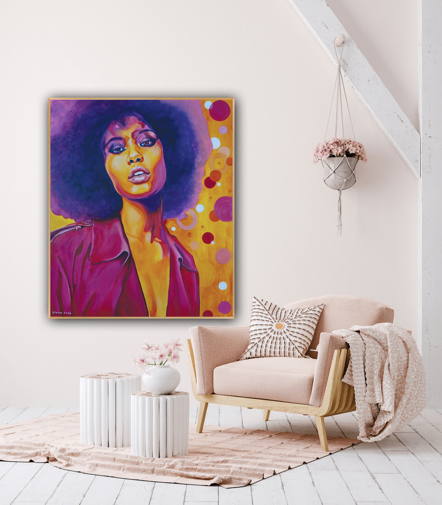 For a living room, a warm and deep painting may be most fitting; for a bedroom, something calm and serene; and for an office, a piece that inspires or brings quiet reflection.