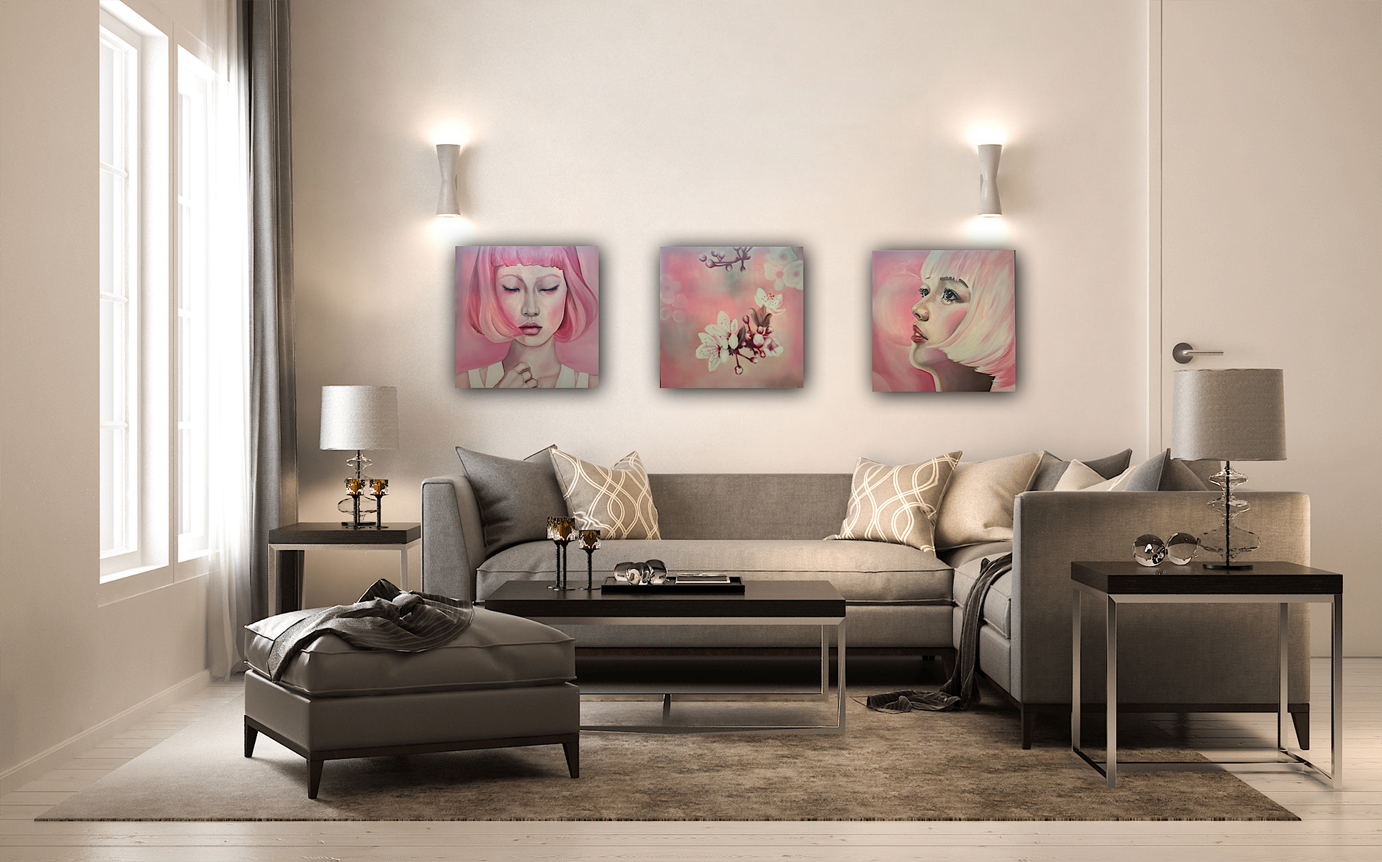 For a living room, a warm and deep painting may be most fitting; for a bedroom, something calm and serene; and for an office, a piece that inspires or brings quiet reflection.