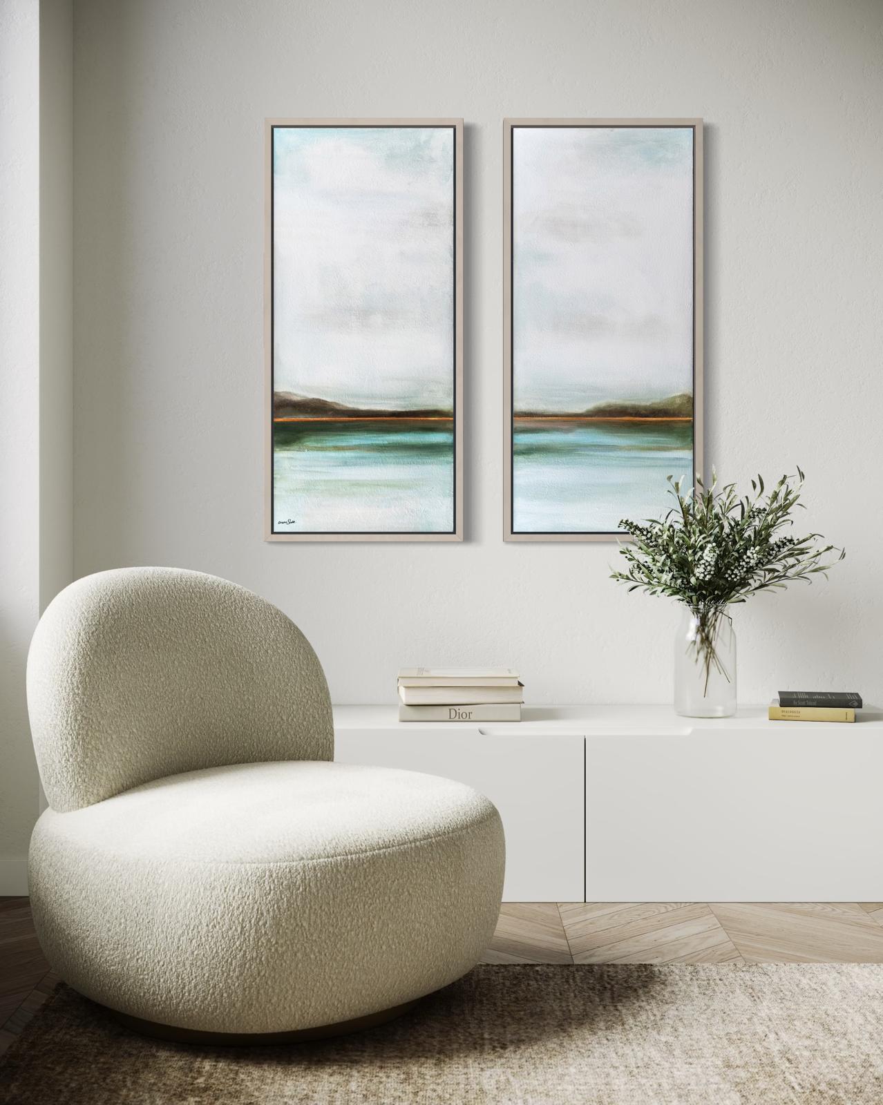 The gentle texture and subtle horizon create a sense of peace and light, adding a serene atmosphere to any space.