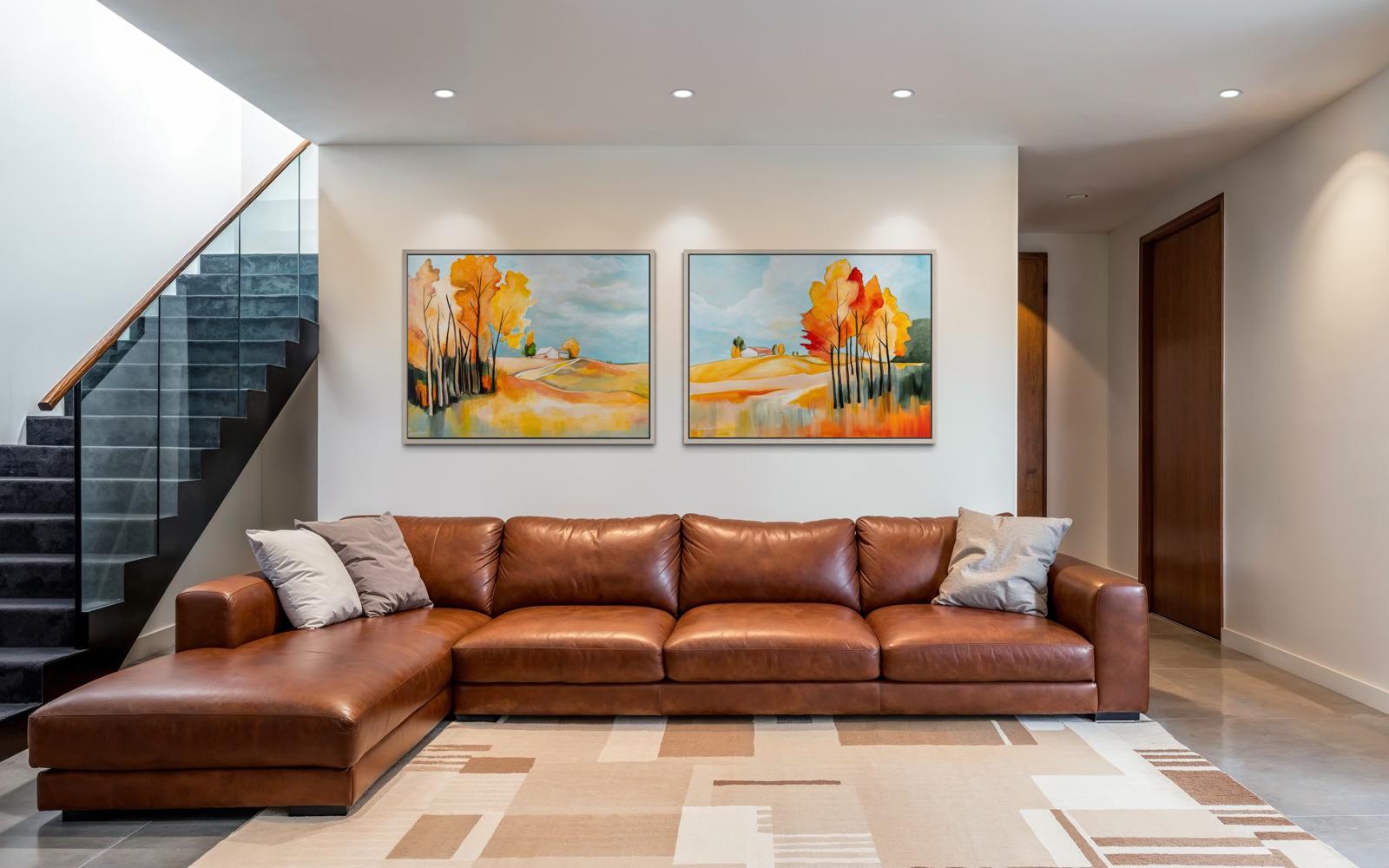 For a living room, a warm and deep painting may be most fitting; for a bedroom, something calm and serene; and for an office, a piece that inspires or brings quiet reflection.