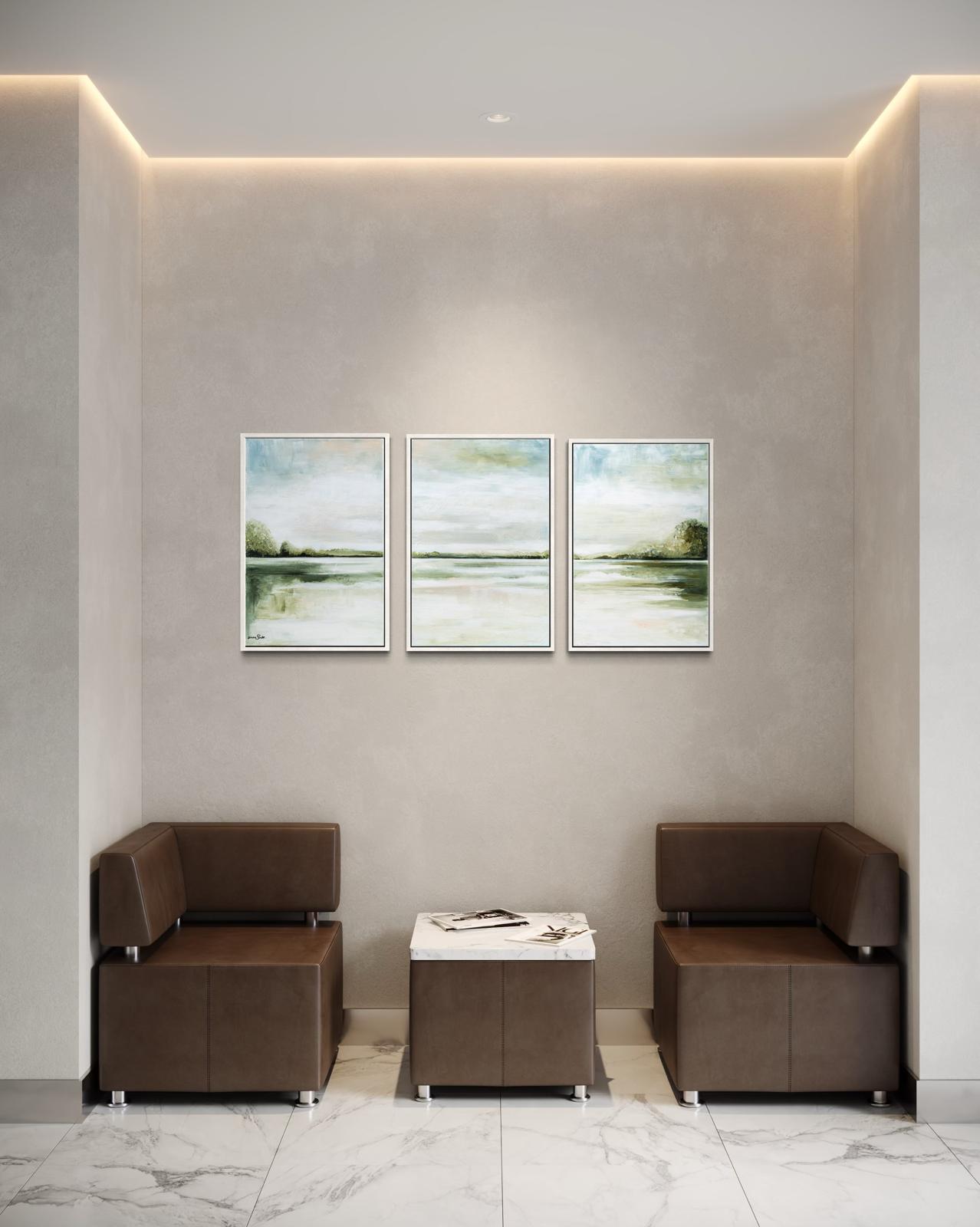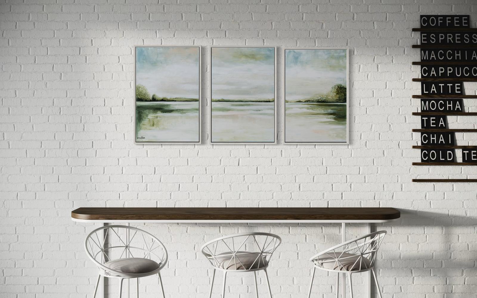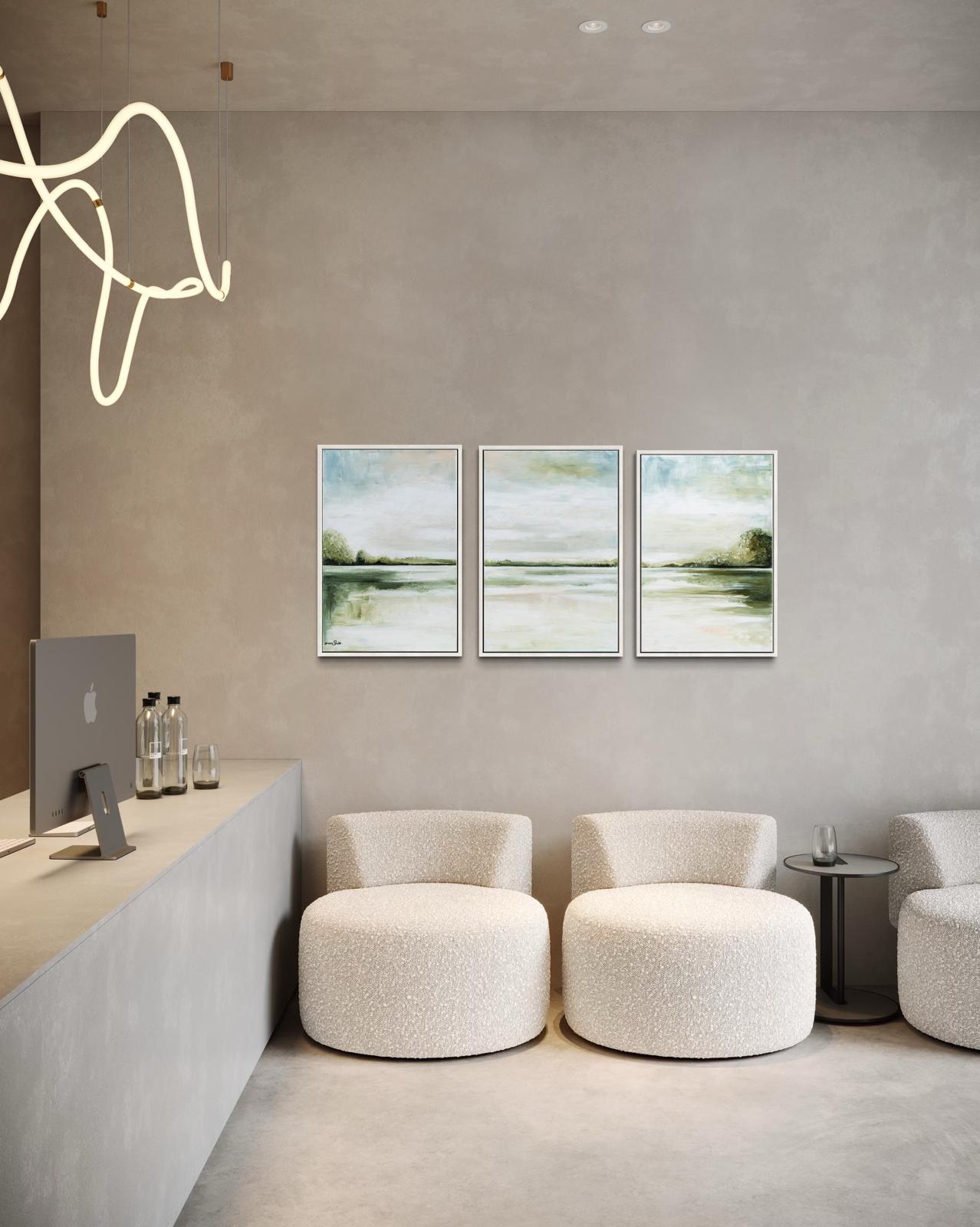 A series of three paintings that together create a harmonious landscape filled with softness and light.