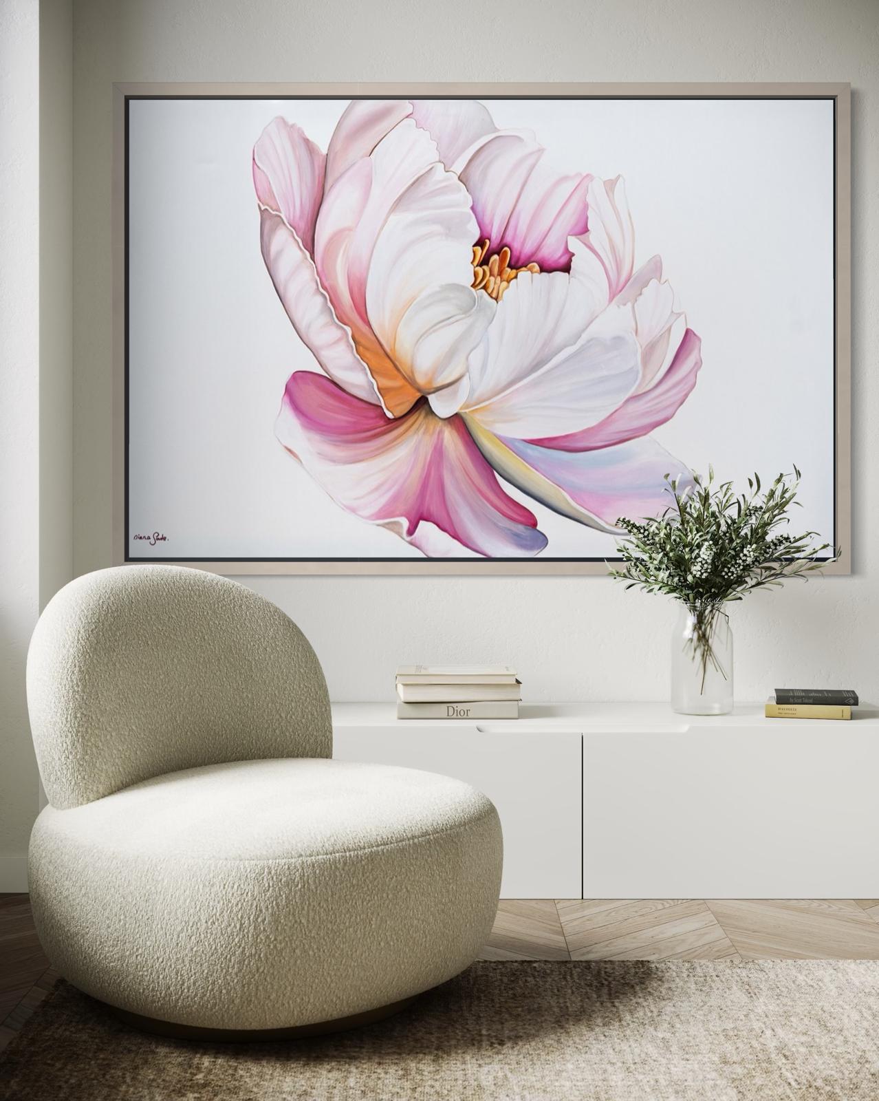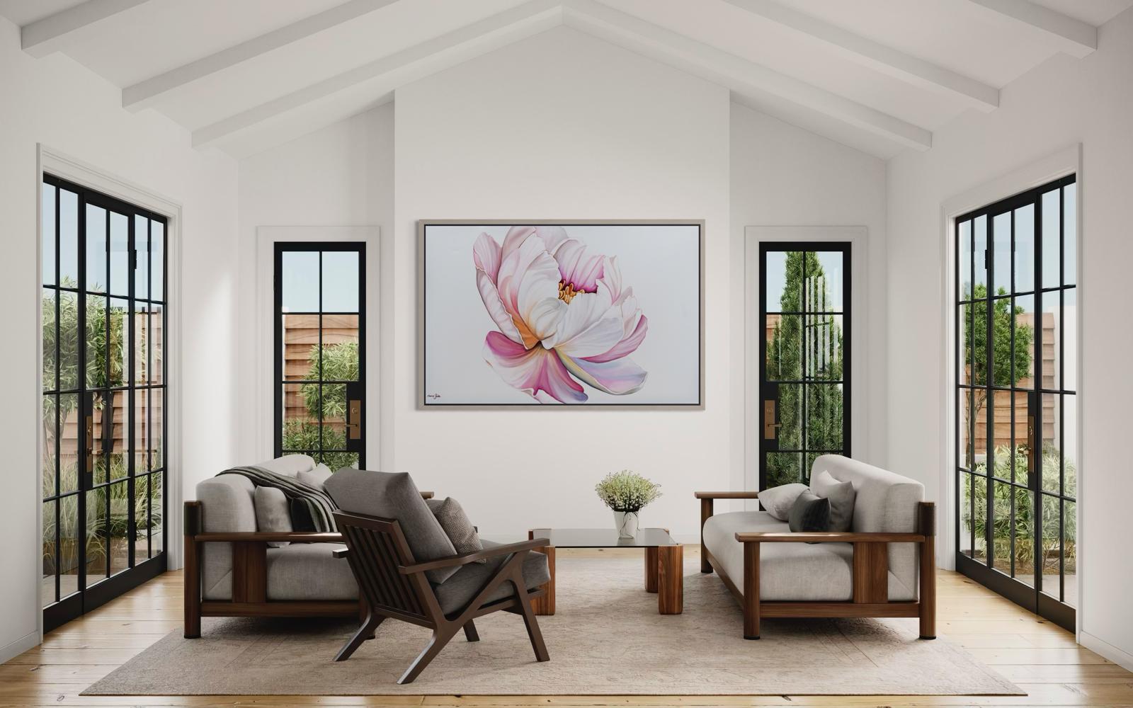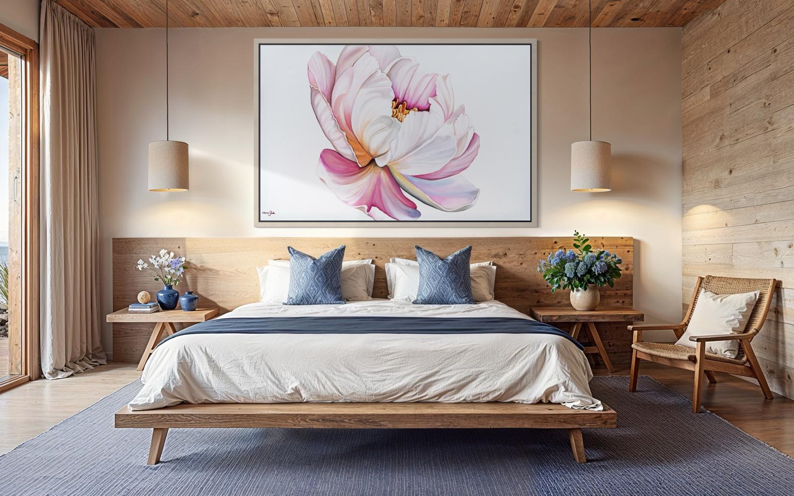 For a living room, a warm and deep painting may be most fitting; for a bedroom, something calm and serene; and for an office, a piece that inspires or brings quiet reflection.