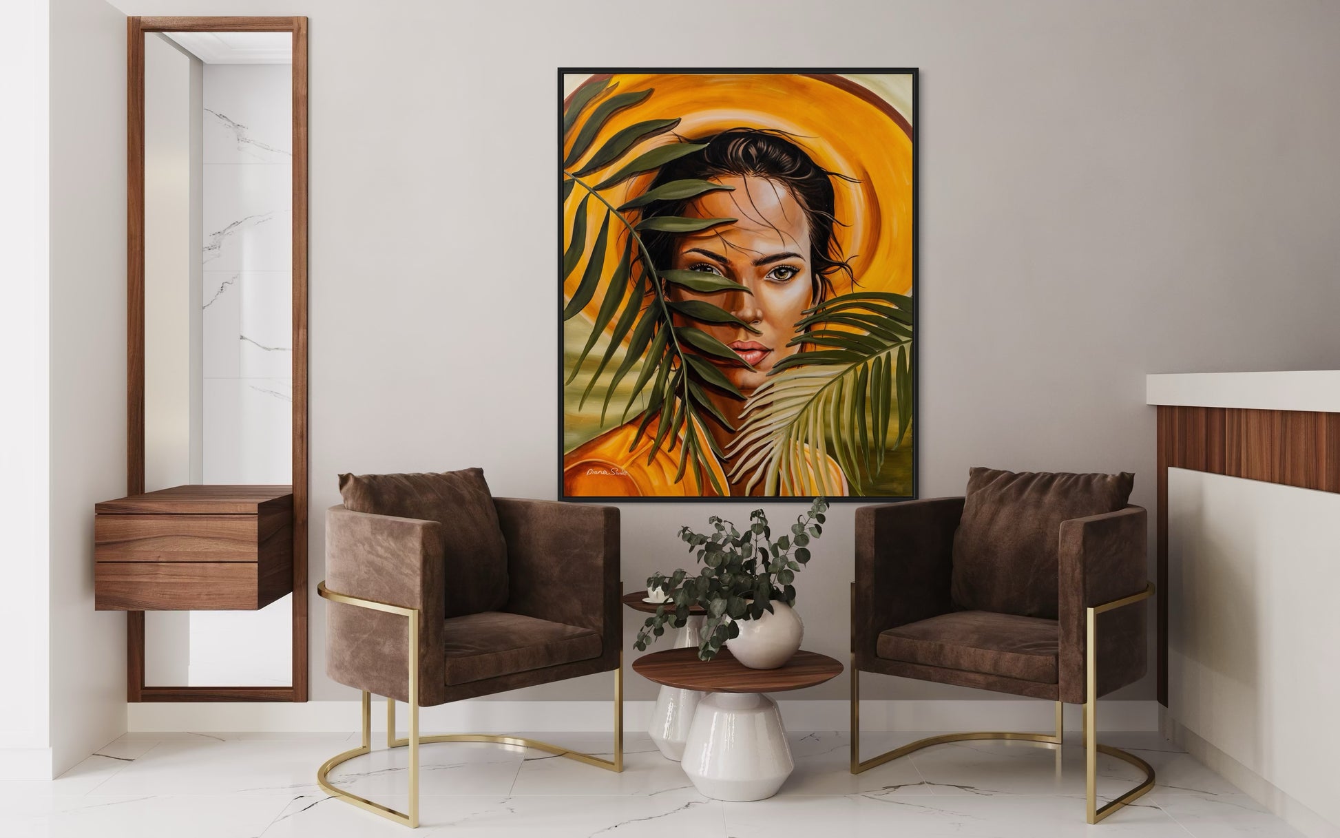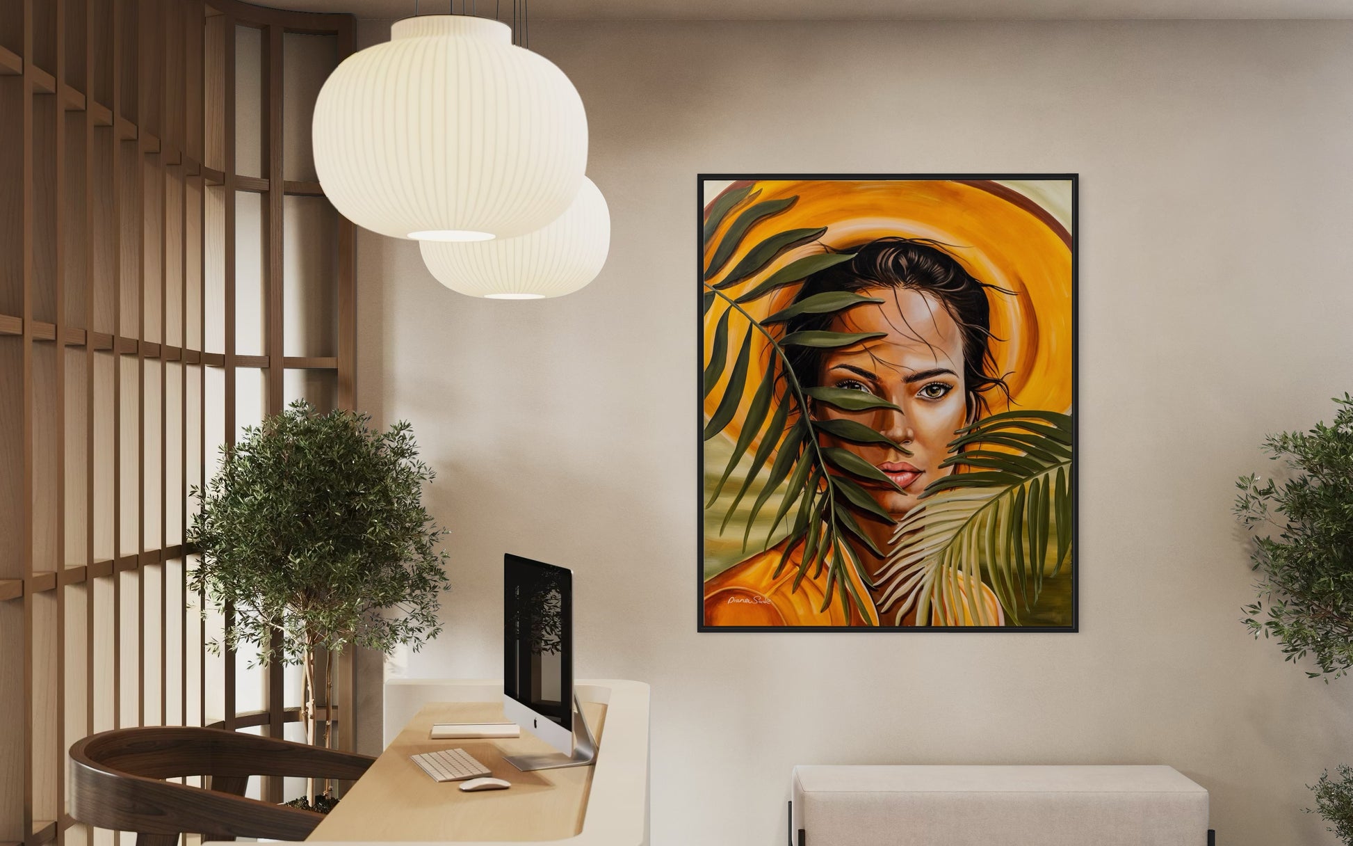 פורטרט תוסס זה מציג אישה חובשת כובע צהוב בולט שלוכד את תמצית הקיץ והביטחון העצמי. פלטת הצבעים הנועזת, בשילוב עם הבעת פניה השלווה, יוצרת איזון בין אלגנטיות לאינדיבידואליות נועזת. אור וצל רוקדים על פניה ומזמינים את הצופה לתהות על הסיפור שמאחורי מבטה.