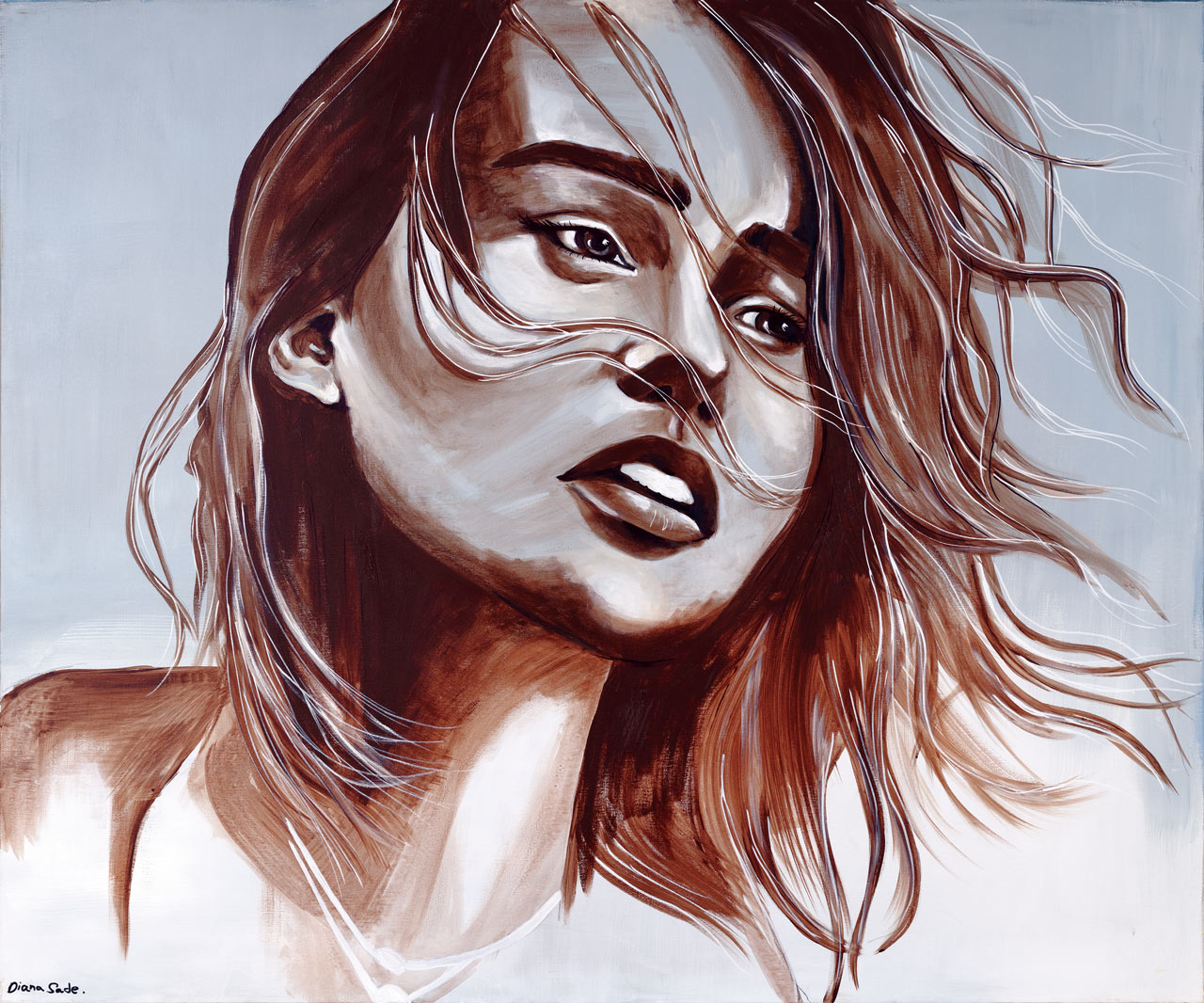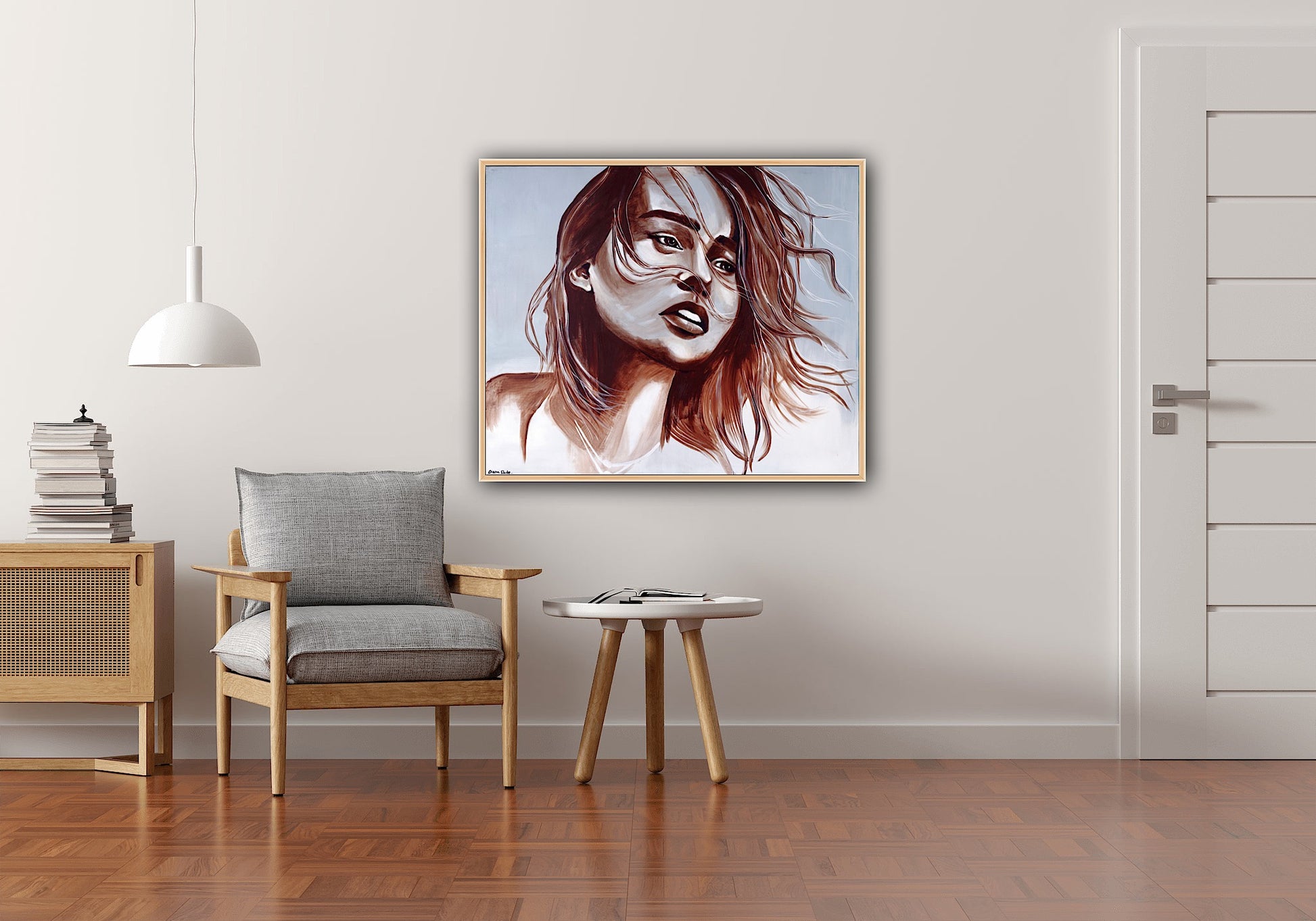 הציור נעשה בשלושה צבעים: כחול, חום ולבן. הוא מתאר אישה המביטה למרחק,